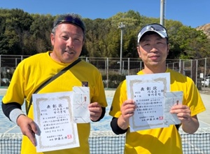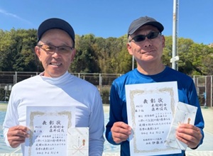 M45早川知成(Chiken hearts) M50柴田善弘(P.S.Pa) M55河野誠(BREAKBACK) M60大野晴彦(BREAKBACK) M65早川典夫(岐南TC) M70水谷賢二(松原庭球倶楽部)